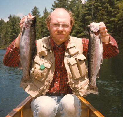 My next job was in upstate NY, where I caught these two nice rainbows on a canoe trip among the remote ponds in the Adirondacks. I still have that shirt, by-the-way.